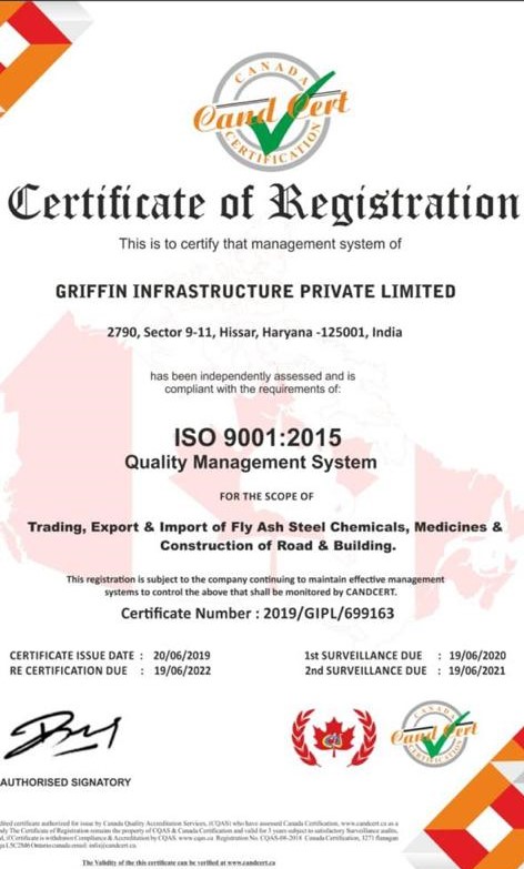 Griffin Infrastructure Private Limited is an ISO 9001:2015 Certified Company